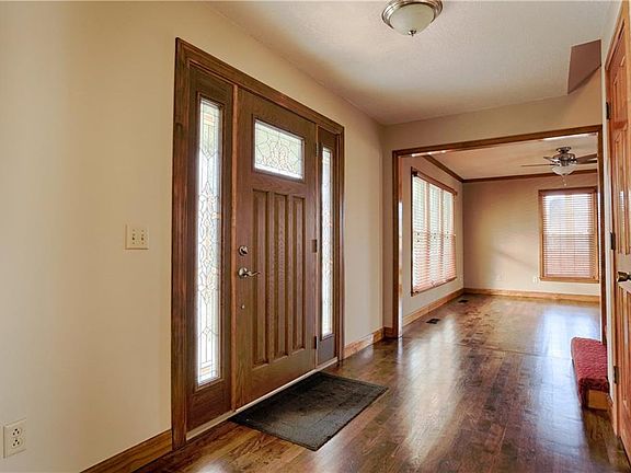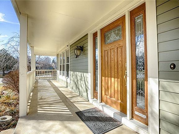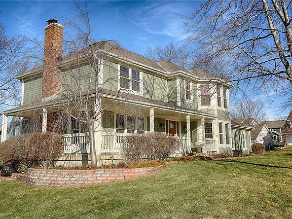 Welcome Home to this meticulously maintained one owner two story in coveted Persimmon Hill. Every detail has been considered starting with a Wrap-around front porch just blocks from all levels of award-winning Olathe schools. Updated main floor offers newer hardwood floors, open kitchen with granite counters, dual-fuel gas stove/electric oven, eating bar with pendant lighting flowing into spacious sitting room perfect for everyone to hang out. The formal dining and living room with fireplace both open to large deck with an attached pergola that has an adjustable roof. Second floor features a primary bedroom with updated en-suite that includes onyx shower for easy maintenance and two closets, updated hall bathroom, large additional bedrooms and a laundry-chute to the main floor laundry room. Lower level is a walk-out and offers two family room areas, one with a 12 x 7 custom wet bar, as well as an office with convenient pass-thru window, third full bathroom and an additional 240+ sq ft storage area. Exterior has been updated with low maintenance James Hardy siding, includes convenient over-sized side entry garage with extra tall 8’ garage doors as well as insulated tilt-in vinyl windows. Large sprinklered corner lot is .4 acres with shed to store all the extras. Community offers 3 pools, tennis court, playground, walking trails and lake with fishing access as well as events with food trucks. Everything you want is right here, hurry to make this your home!