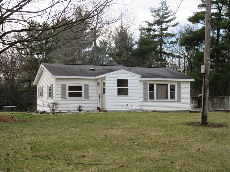 Three bedrooms, one bathroom, living room, kitchen with all appliances, small dining room area, walkout basement, slider to 14 x 36 deck, currently has hot tub in it that seller is reserving. Above ground swimming pool, the garage that is detached is 18 x 20 and has a 8 x 8 tool shed, it is insulated and also has 220, the polebarn is also insulated and has over a foot in the ceiling, woodstove, has 220, and is 30 x 40. Great wooded acreage, with over 500ft on Crockery Creek, a fast flowing trout stream, there is a bridge across the creek, great country setting.