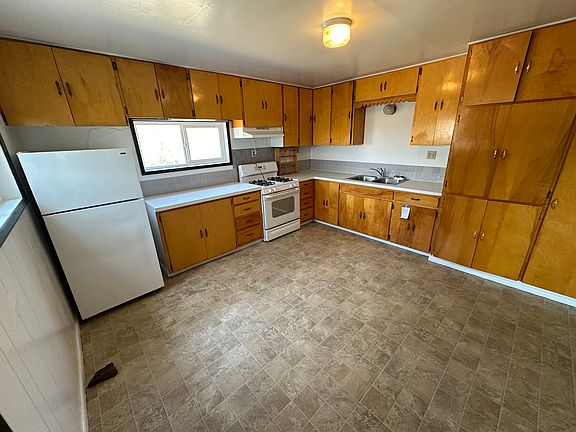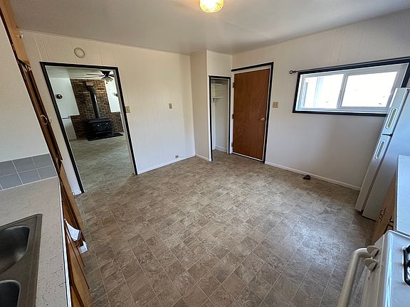 Kitchen and living split floor plan. Two large bedrooms separated by very large bathroom with laundry hookups. Gas stove. Wood burning fireplace. Electric wall heater. Entry has "mud room" or sitting area. Large gravel parking area. Sewer, water, trash included in rent rate.