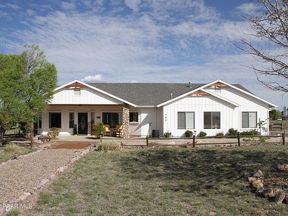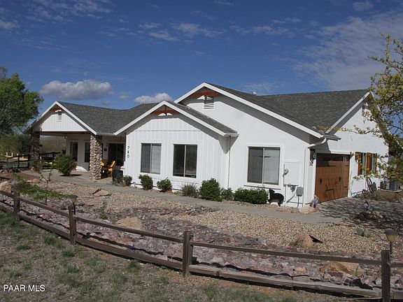 Come see this Beautifully remodeled Modern Farmhouse on 6 acres located in one of the best neighborhoods in Chino Valley, Great water area, 4 acre minimum lot size, site built homes only and NO HOA! The property is fully fenced and ready for your animals, there is plenty of space and storage for them and your toys. There is a 12x20 Barn Garage, a 15x20 Donkey barn complete with Donkeys and a 8x24 Heated Hen Hotel, with Chickens. Inside there is a semi open floor plan with 3 spacious bedrooms and 2 Baths, there is a separate dining space as well as the eat kitchen which as been completely renovated. There is also an Arizona Room and bonus room that is attached to the Primary Bedroom which would make a great Office, Nursery or craft room. Beautiful Long range views from every window!