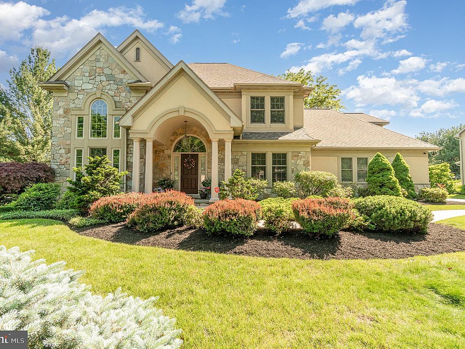 Beautiful 6-bedroom home located in Stoney Run and offers a host of luxurious features. As you enter, you're welcomed by a vaulted entryway, high-end finishes, beautiful moldings, and custom-built bookshelves. The home features hardwood floors and exquisite architectural details throughout. The kitchen is equipped with granite countertops, stainless steel appliances, and an island with a breakfast peninsula. Adjacent to the kitchen is a living room with arched windows, 20-foot ceilings, and a cozy stoned fireplace. The first floor also includes a family room with a vaulted ceiling and a primary bedroom, complete with a glass-enclosed shower, double vanities, and a walkout glass door leading to a cozy deck with a jacuzzi. Upstairs, there are four additional bedrooms and two bathrooms, each with built-in window seats. The lower level offers versatile finished space suitable for a game room, gym, or additional bedroom and includes a full bathroom. The deck, perfect for entertaining, overlooks a large backyard adjacent to a common green space area. From here, it's just a short walk to an 8-mile trail leading to Shank Park. The property also features mature outdoor landscaping, lighting, a new roof, and is conveniently located minutes from Hershey Medical Center, downtown Hershey, and Hershey Park.