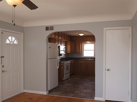 Freshly remodeled. Newer kitchen cabinets and counter tops. New vinyl flooring in kitchen. Hardwood flooring in the living room. All new paint throughout and white painted trim. All kitchen appliances stay and washer and dryer. Fenced in back yard.
