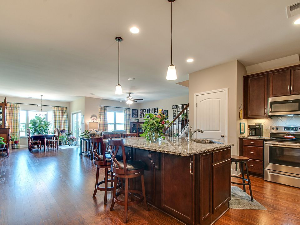 Striking Brick Cambridge Model Home has Primary Suite w/EnSuite Bath w/Separate Tub, Shower & Water Closet in Back and 2 BR off Front Hallway w/ Full Bath ~ The Open Floor Plan Kitchen has Granite Island, Large Pantry & is Open to Living & Dining Areas w/Finished Wood Floors ~ Dining Opens to Outdoor Patio w/Extended Patio Areas for Eating & Seating to View the Beautiful Sunsets ~ Living Area & Patio have Sonos Speakers to Enjoy your Music ~ Surround Sound in Bonus Room Upstairs w/Full Bath - Could be 4th BR ~ The Coveted Community has a Lovely Clubhouse w/Stone Fireplace, Kitchen that Opens to Party Room, Billiard & Card Room, Fitness Center, & Covered Outdoor Seating ~ Pond, Pool, Hot Tub & Kids Pool! Convenient to BNA Airport