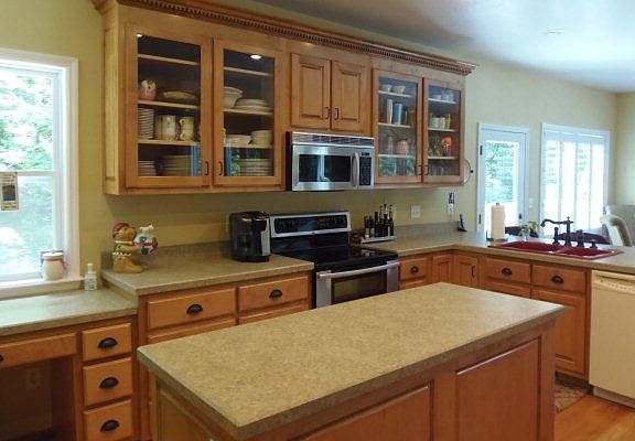 - Wet Bar, Pantry, Vaulted Ceiling, Window Treatments, Ceiling Fan(s), Walk-in Closet(s), Master on Main, Laundry on Main, Tile Shower/Tub, Solid Surface Counter Tops, Double Vanity