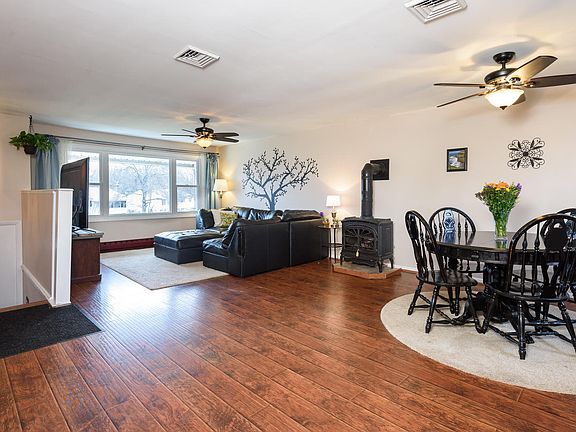 You'll love this beautiful, clean & bright bi-level home within the desirable & peaceful Woodgate community. This freshly painted home beams with natural light and excellent features. The open concept main floor has a large living room with a gas heat stove, a spacious dining room and a gorgeous kitchen with granite counters, sophisticated backsplash & stainless steel appliances. The sparkling hand-scraped oak laminate continues throughout the entire main floor to the roomy full bathroom and three generous bedrooms. The lower level includes a large fireplace, a wet bar, a powder room, another room that can be great for an office or a workout space and a sizeable laundry room. The patio door leads to a large fenced backyard which is excellent for outdoor entertaining and gardening, and a large 10x20 shed. Other fantastic features include a tank-less propane powered hot-water heater (2013); NEWER Roof, Windows & Anderson patio door (2013).
