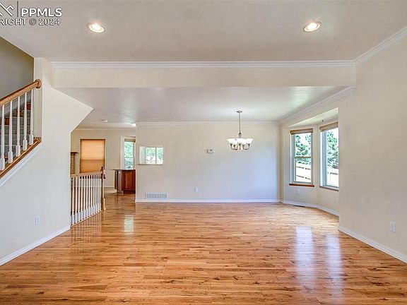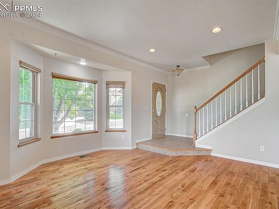 Welcome to this amazing District 12 home located just minutes from Pinon Valley elementary school! This home boasts 5 bedrooms, 4 bathrooms, a 2 car oversized garage along with a spacious backyard! From the Foyer, you'll enter to the main level. This main level includes the living room and dining room areas both with plentiful natural light and with wood flooring throughout! From the dining room you'll see the family room with a gas fireplace, which attaches to the kitchen, a half bathroom, and the laundry room. The kitchen includes stainless steel appliances, a gas burning stove, and a custom tile backsplash, not to mention the walk out to the back deck, which has a hot tub pad already wired for a future hot tub, and the spacious backyard! From the main level we can head upstairs to the living quarters. On this upper level there are 4 carpeted bedrooms and two full bathrooms! The first bedroom is the Primary bedroom, which has an en suite 5 piece bathroom and walk-in closet! The other three bedrooms have plenty of space and are conveniently located near the full bathroom in the hallway. Lastly, when we head to the lower level of the home, there is a roomy recreation room with a dry bar! Heading down the hall from the recreation room, you'll find a 3/4 bathroom, the utility room, and the final 5th bedroom! This home has easy access to Hwy 115, I-25, military installations, hospitals and downtown Colorado Springs. Biking and walking distance to the Reserve at Broadmoor Glen Park, makes this home ideal for outdoor activities. Come check this awesome home out today!!!