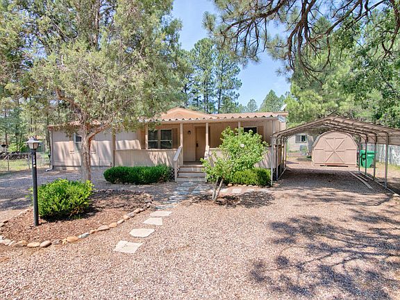 Move-in ready manufactured home on cinder block foundation in the desirable Show Low community of Park Valley. New carpet is being installed on July 21st and the home will be painted inside and out! This property is completely fenced with a 3 gate access and RV parking. 2 storage buildings, carport, large covered front porch, cul-de-sac lot, natural gas, and close to golf, lakes, shopping, and dining.
