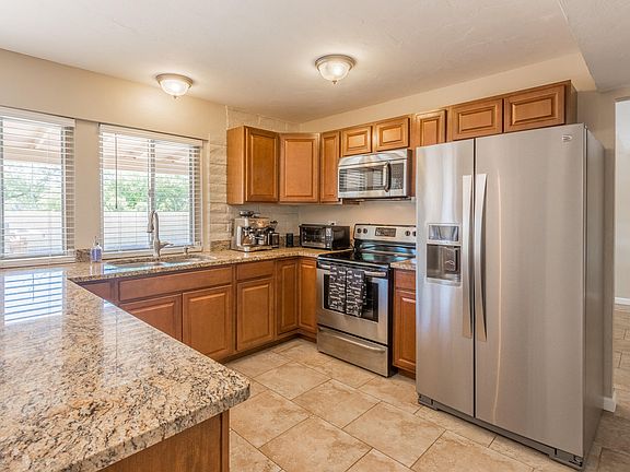 Interior completely & beautifully updated in this ''con-temporized ranch'' on spacious.82 ac. view lot. Details: 18x18 tile floors, lots of recessed lighting, newer fans & lights. Gorgeous granite countertops in kitchen & both baths complemented by tile surrounds. Large living rm, formal dining & family rm w/ fp offer lots of space to entertain or relax. The kitchen has a spacious breakfast area. Newer s/s appliances, including the fridge.New low-E windows w/plantation shutters in Living Room & Dining Room. Just over 2400 sqft under roof w/deep covered patio for enjoying the sunsets. Views of the Catalinas and Rincons will not disappoint. Extra large, easy care yard with plent of room for a pool and play area. 10x14 storage shed accessed thru double gates to yd. Extra large, easy care backyard with plenty of room for a pool and play area. __x___ storage shed is conveniently accessed through the double gates to yard.