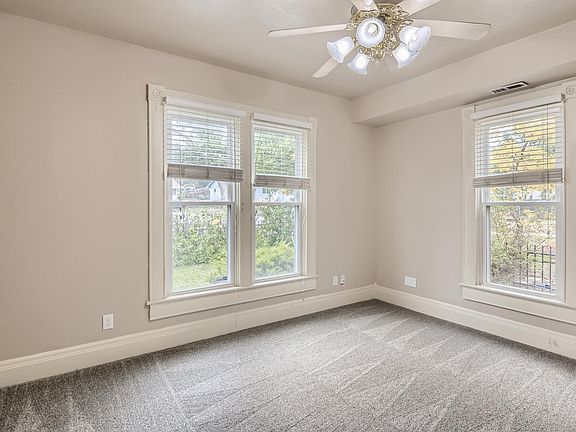 Beautiful 3 bedroom, 3 bath Victorian style house on a huge lot with outstanding mountain view including Pikes Peak. Main level features living room, family room, formal dining room, kitchen with large pantry, and full bath. Family room could easily be converted into a 4th bedroom. Upper level includes master bedroom with walk-in closet and adjacent master bath, 2 additional bedrooms, office, community bath with washer/dryer hookups. New carpet on both 1st and 2nd floors. Laminate wood flooring on portion of main level. New interior and exterior paint. New furnace. Detached 2-car garage with workshop. Large detached storage shed. Sprinkler system. Close to downtown, shopping, restaurants, entertainment. Close to parks and bike paths. Easy access to I-25 and military bases. Renter responsible for all utilities. There is a pet deposit of $300 plus $25/month pet fee for up 2 small dogs [limit 25 lbs each]. No cats. No smoking of any kind. Garage access is via shared driveway from alley.