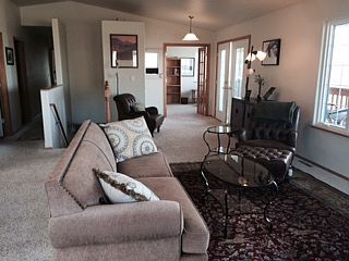 Upstairs: Master bedroom suite with walk in closet and ensuite bathroom, den/library (could be bedroom or dining room) Chef's kitchen with commercial-type gas range, 2ND full bathroom /living/dining , mudroom with washer/dryer hookups and pantry. Downstairs: Two bedrooms one bath (Jack and Jill) /exercise room (Ballet room with mirrors and Bar) media room and office. Tons of storage Walk out basement Partially fenced, completely deer fenced. Fantastic views. Light airy house perfect for active family. Natural gas barbeque and refrigerator stay. Buyer's agent commission negotiable.