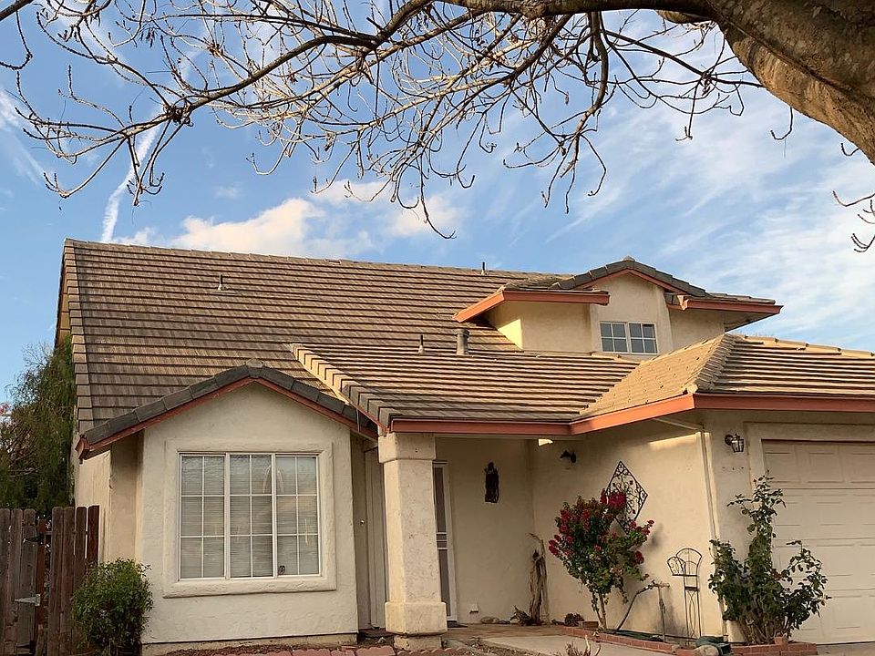 Hampton Estates popular 4 bedroom, 2 story model! A large yard with a covered patio, side gate access is a plus and will allow you have a garden, spacious play area! Appealing vaulted ceiling in the living room, kitchen family room combo, a fireplace and breakfast bar is family friendly. The downstairs bedroom with walk in closet is convenient. Upstairs master and en-suite has a high ceiling and roomy. Come take a look!
