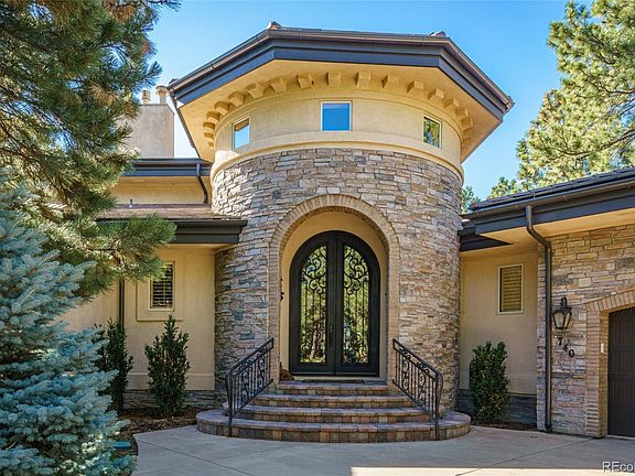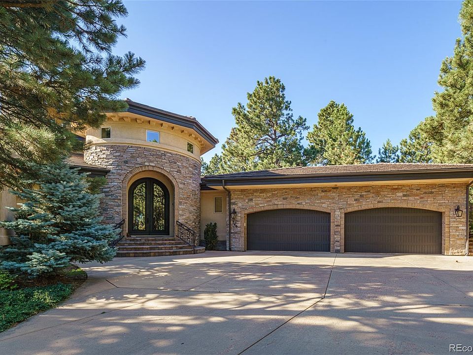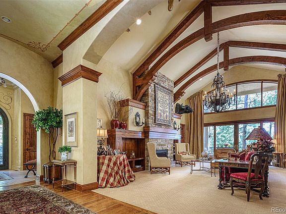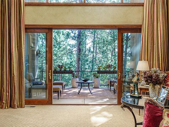 Built in 2003, this magnificent, custom, walkout rancher is situated on a .66-acre treed lot in the Broadmoor Resort Community. This home is graced with elegant craftsmanship throughout. Entering the double iron doors, you step into a marble entry that exudes quality. The main level flows wonderfully, taking full advantage of the outdoor spaces while maintaining privacy. The great room features hand hewn beams, vaulted barrel ceilings and is accented with a floor-to-ceiling natural stone fireplace. Remodeled kitchen includes a professional grade Wolf gas range, Sub-Zero refrigerator, two dishwashers, large pantry, Clive Christian cabinets with Habersham accent cupboards and slab granite counters. Through double doors off the great room enter the spacious main level master suite with a fireplace, and adjoining master bathroom with marble tile floors and counters, and large walk-in closet. The walkout lower level includes an open rec-room, theater room and three additional bedrooms and two bathrooms. Updated landscaping to include large Creek water feature, turf grass and evergreens round out this amazing mountain home.