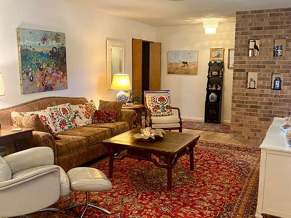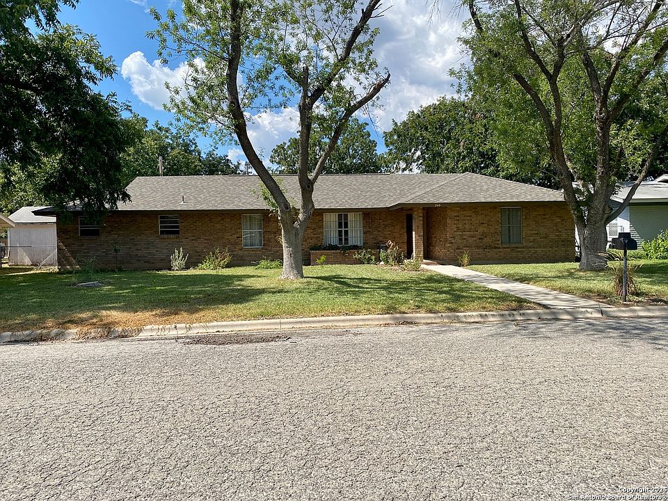 One story ranch style brick home for single-family residence featuring 2 large bedrooms, 2 full bathrooms, and 2 living areas with 1,696 square feet of living space. The property has a lot size of 0.27 acres and is situated in a quiet, tree-lined neighborhood with minimal through traffic. The home has alley access to the extra long driveway providing additional parking beyond the garage and carport. A full laundry room with an oversized sink occupies the front part of the 2-car garage along with an additional storage room. Upgrades and additions include a new roof installed in 2025 along with a carport extension, and a covered roof over the back yard patio. Quality vinyl plank flooring has been installed throughout. The popcorn ceilings have been scraped and repainted and the kitchen has new appliances and countertop. The seller has the unpainted doors and hardware for the kitchen cabinets should the new owner want to put them back on. The back and front yard is planted with Texas natives insured to invite hummingbirds, bees, butterflies, etc.