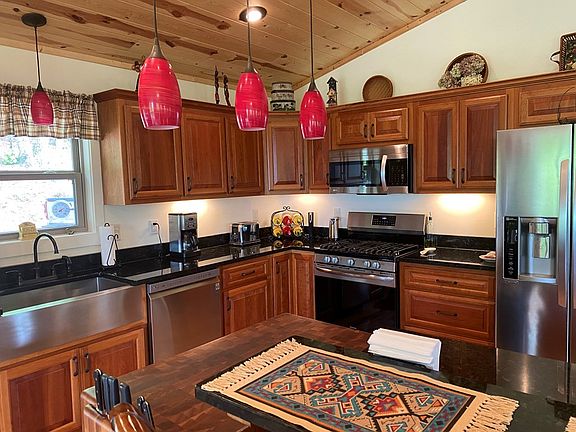 This 2 BR 2 BA home in Cherokee Way has end of road privacy, view & a quaint 'bunkhouse' sleeping porch! The finishes are thoughtful & cohesive in creating a calm & peaceful interior - wood ceilings throughout, wood floors in all but tile in BAs, hotel-like walk-in tile showers w/river rock floors & glass enclosure in BAs, granite counters, lovely cabinets & soft soothing color palette. Fully & tastefully landscaped lot is like jewelry for the home. Terraced beds for vegetable, herb or flower gardening. Crawlspace height provides workshop/storage. You will enjoy the sights & sounds of mountain living!