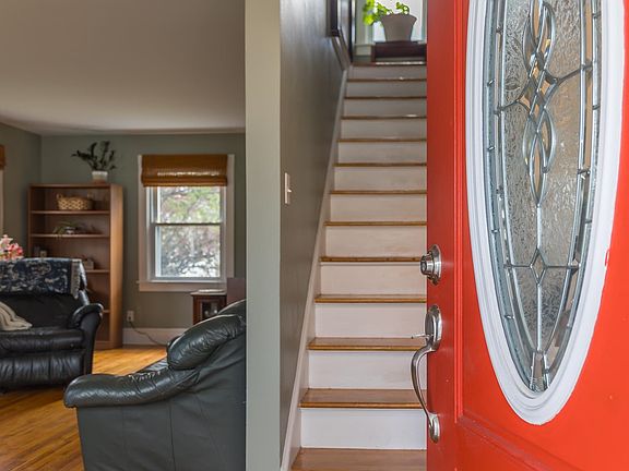 A bright and cheerful home with character and strength of old. A spacious living room with oak floors and fireplace; a sunny dining room and kitchen are located on the main floor; 2 bedrooms and a study/library or nursery are on the second floor along with the full, tiled bath and a back porch warmed by the eastern sun. Loads of storage in the unfinished basement. A level, generous backyard bordered by a serviceable alley offers loads of possibilities for play, BBQ's, and gardening. The outside shed has electric inside. When current owner purchased the home 2012 it had extensive remodeling done by seller. The nursery/library is finished but no closet.