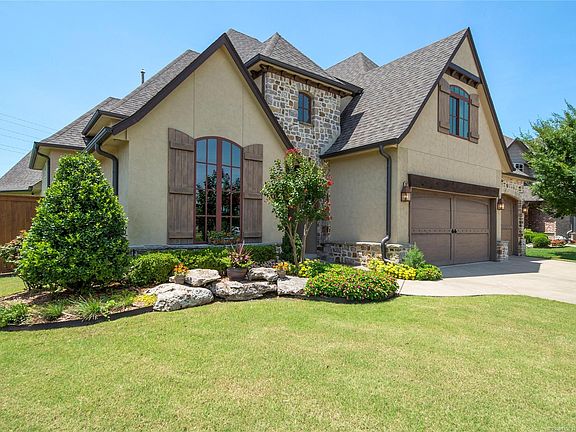 1 owner custom built by Cobblestone Homes. 4 bedroom, 3 bath, 3 car garage. 1st floor office. Master & one additional bedroom on 1st floor. Kitchen offers massive island & open concept living/dining. Game room w/study nook/second office & media or flex room up. Spray foam insulation. Incredible covered outdoor entertaining space. Deep covered patio & full kitchen w/fireplace & fire pit. Walk out attic space. Jenks NW elementary. Neighborhood offer pool, park, trails, stocked ponds & disc golf course.