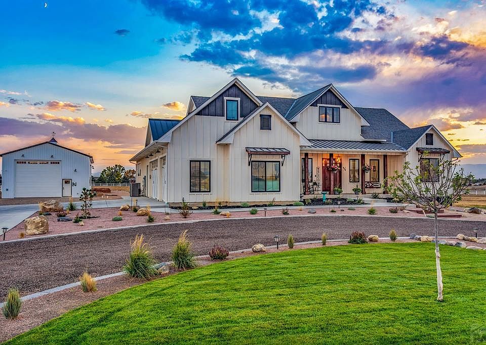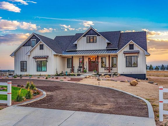 Your DREAM HOME at Calle De Caballos, "Street of Horses," awaits you! This STUNNING, custom-built home is the ideal blend of modern amenities & farmhouse charm in desirable Pueblo West located just minutes from schools, shopping, and a short commute to Pueblo or Colorado Springs. Zoned A-3, the home sits on one lot & includes a neighboring lot, totaling 5.51 acres bordered by three-rail vinyl fencing with picturesque mountain views. Before entering the home, you're greeted by a beautiful front porch sitting area, abundant exterior lighting, and low maintenance landscaping. Step inside to appreciate the open living area with a massive gourmet kitchen complemented by a stainless kitchen appliance suite, leather-granite countertops, a huge butcher block counter center island, walk-in pantry, modern window treatments, gas fireplace insert, bookshelves, and more! Also on the main level is the elegant master bedroom featuring a spa-like bathroom, & direct access to the garage, laundry room, and patio. 2 more large bedrooms are on the main level, a full bath, a half bath, & an office. Upstairs, you will find a cozy loft plus a half bath perfect for your hobby room. Downstairs includes 2 bedrooms, 2 bonus rooms perfect for a gym/playroom, and a plumbed/ready to finish bar with a large living area. Out back you'll find an AMAZING rear patio with outdoor kitchen, a 36x50x16 pole barn shop, and RV parking + dump station. Words can't describe the MANY MORE FEATURES to this GREAT HOME!