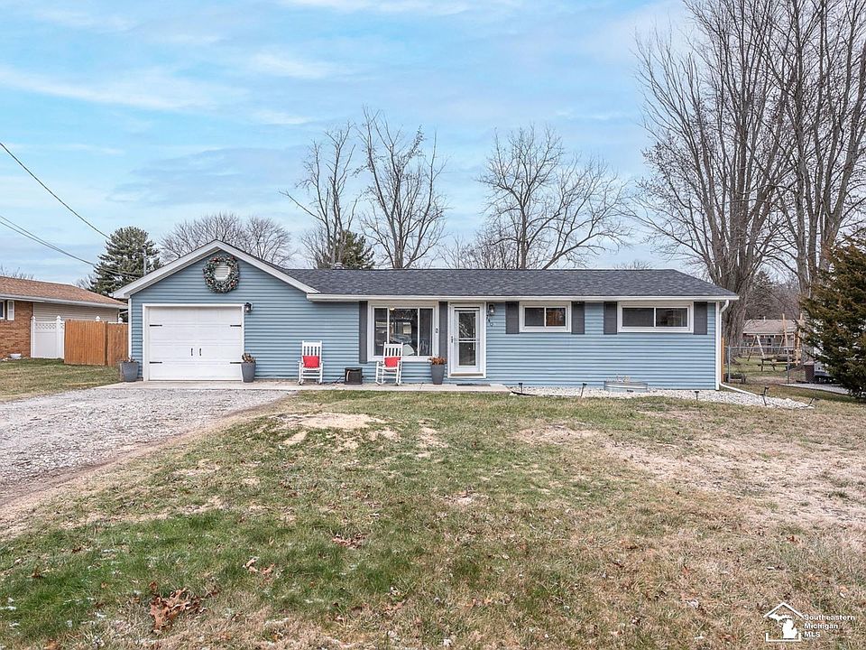 This charming 3-bedroom, 1-bath home offers a perfect blend of comfort and modern updates. As you enter, you'll immediately notice the inviting living space featuring an elegant electric fireplace that adds warmth and ambiance, making it a great spot for cozy evenings. The kitchen is designed for convenience, boasting ample counter space and easy access to the dining area, creating an ideal setting for both daily living and entertaining. Step outside to discover the covered outdoor stamped concrete patio, a fantastic space for relaxation and gatherings. The patio includes a stylish bar area, perfect for hosting friends and family during summer barbecues or enjoying a quiet evening under the stars. Attached is a 20x12 pole barn style space with a bathroom and exercise area with garage door. Additionally, the home features a brand-new roof, providing peace of mind and energy efficiency. It's a wonderful opportunity for anyone looking to enjoy a stylish and comfortable lifestyle in this lovely home.