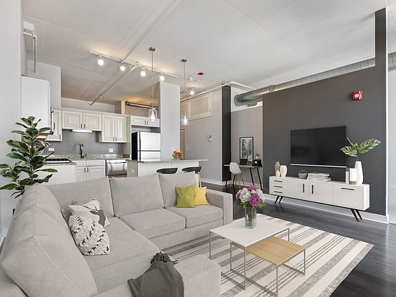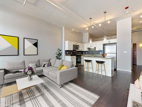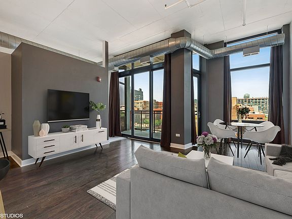 Welcome to the Fulton Market District in the West Loop! This lovely west-facing 2BR/2BA soft loft boasts floor-to-ceiling windows, 11 ft interior height and offers a dining area & office nook. The open granite & stainless steel kitchen features a large island and dual drawer dishwashers. Very spacious bedrooms with a walk-in-closet in the master. Upgrades in both bathrooms include wall mounted faucets, granite counter tops, square vessel bowl sinks with large a marble walk-in-shower with body sprays in the master. The in-unit washer & dryer, gas forced heat/central air, nice sized balcony and garage parking (add'l $30K) makes this THE ONE! Well managed building with amenities including door-staff, on-site manager, bike storage, dog run & fitness center. The LOW ASSESSMENTS include internet & cable TV. Steps to some of the city's best restaurants, coffee shops, bars, nightlife, grocery stores & parks. Walk to work or CTA blue, green, & buses and Metra. Investor & pet friendly!