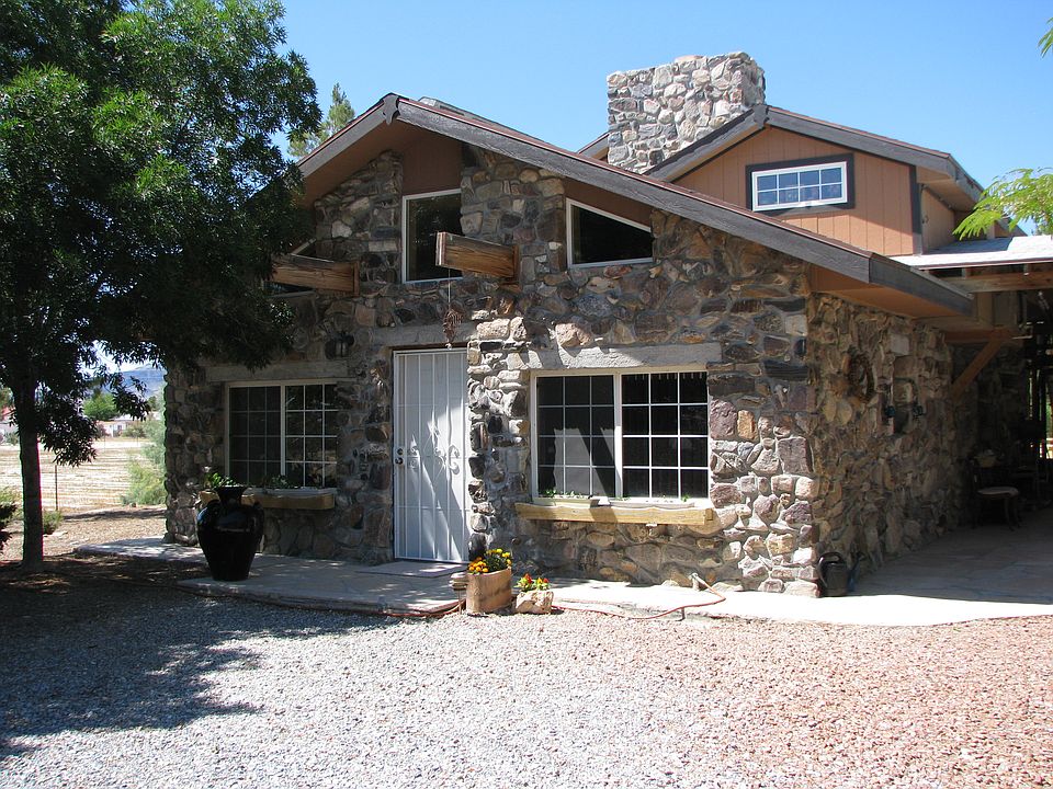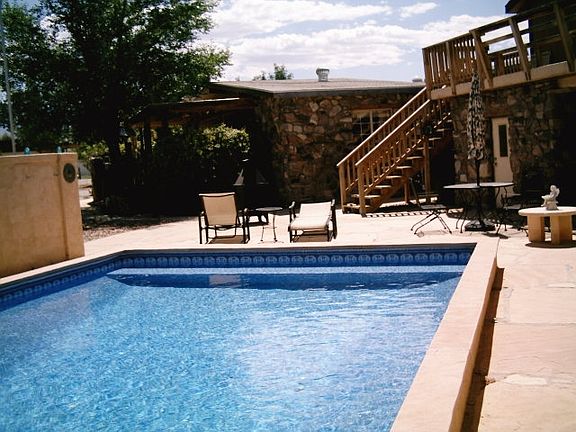 This property very unusual, it has two homes, one is a manufactured home, and the other is a guest house covered with beautiful stone work. Guest house is 1,219 ft. It has its own kitchen and is separate from other home. The manufactured also has stone work. It has built in e there is a 15 by 30 in-ground pool. the guest house has back stairs has access to pool. there are 3, 1 car garages also covered with stone. Property has electronic gates.