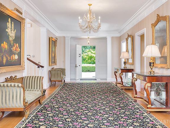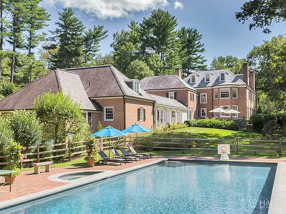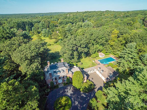 Architecturally significant 1930's brick Williamsburg colonial offered for the first time in 20 years, this stately home with floor to ceiling Jeffersonian windows captures views of the bucolic 4 + ac. w/mature specimen trees, grand terrace, formal garden w/octagonal "summer house", & pool w/pool house. The integrity of design & detail continues throughout this 5 bdrm/5 bath home & are consistent of the period including 10' ceilings, front to back entrance hall w/ 9' French doors, multiple bay seating areas, original trim & plaster details. The 1st fl. includes elegant formal DR, LR & library w/fireplaces, kitchen, family rm & butler's pantry. Master suite on 2nd fl w/bay seating area & FPL, marble bth, dressing rm, office w/built-ins. Add'l amenities include playrm w/theater on 3rd fl. w/ 5th bdrm & full bath, 5 car garage w/ bonus rm & covered pergola. Property includes 40' of water frontage.