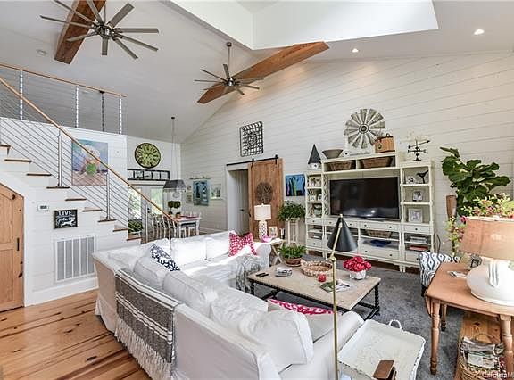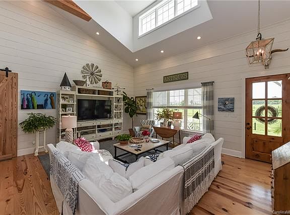 A very unique property with rolling pastures on +/- 7.5 acres! Property includes electric fenced pasture with a 4 stable barn/living quarters above. Home is a beautifully designed farmhouse style with shiplap throughout, tons of upgrades, open floorplan with split BR's and lots of light. 2 BR/2BA with a flex room/BR in loft area. Beautiful heart pine flooring throughout. Large master BR with vaulted ceiling, heated floors in BA . Butler's pantry with open shelving off of kitchen, lots of storage with a full unfinished basement, 2 large porches on front and back of home with views of pastures and woods. Exterior is corrugated metal requiring little maintenance. Plenty of room for a pool in backyard. Lots of parking for horse trailers and/or recreational vehicles. 2 washing stations at barn with hot/cold water, cold water available in pasture for horses. Close to town, easy to get to essential shopping and great schools. Too many extras to list, a must-see property!! Bring all offers!