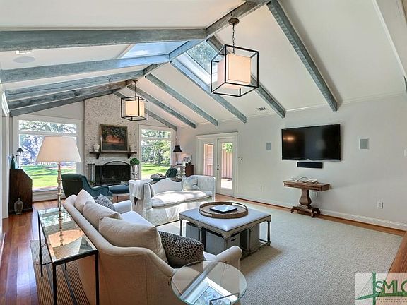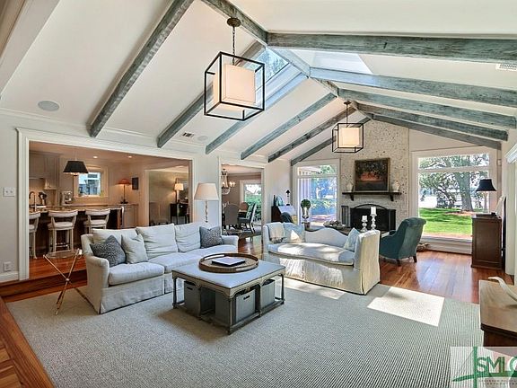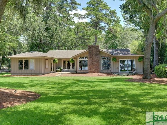 Wilmington River -Total remodel by Greg Hall. One level living with open floor plan. Chef's kitchen with fabulous island. Stainless appliances, walk in pantry and custom cabinets. Hardwood floors, vaulted ceiling, tabby fireplace -picture windows to frame river view. Half bath and laundry room off kitchen Master suite with huge sitting room/home office. Walk in closet, master bath with custom cabinets, separate shower, dual vanities. French doors open to patio. Bonus room--with separate workshop. New covered dock with 15k# covered boat lift. 28" floating dock hoist. Beautifully landscaped with circular drive. Golf course views on front and Wilmington River dock. Vacation at Home in this stunning home. !