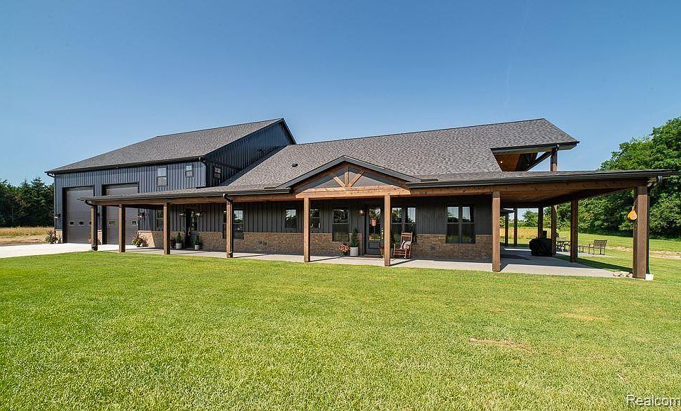 Feast your eyes on one of the most elegant barndo-style, post-and-beam construction homes ever offered in the State of Michigan! Set on over 10 acres, this newly built Barndo boasts over 3,600 sq ft of living space and 2,500 sq ft of garage space. Radiant heat under polished concrete floors in the home, and epoxy floors in the garage, keeps your toes and nose warm throughout the winter.