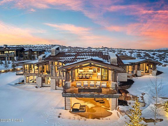 Nestled in the prestigious Elk Ridge Heights neighborhood within Promontory, this exquisite 6-bedroom, 8 bath estate is a masterpiece of design and craftsmanship. Created by renowned architect Michael Upwall and built by Douglas Knight Construction, this home embodies sophisticated mountain living with panoramic ski resort views and seamless indoor-outdoor integration. The great room is a true architectural statement, featuring floor-to-ceiling windows with a unique curved design that not only enhances the home's elegance but also perfectly frames the breathtaking mountain views. Primarily main-level living, the thoughtfully designed floor plan includes six en suite bedrooms plus a dedicated office and theatre, ensuring both comfort and privacy. Every detail has been meticulously curated, with elevated finishes, refined lighting fixtures, and a cohesive aesthetic thoughtfully enhanced by Mark and Aly's expert design. Designed for effortless year-round living, the home features radiant heat throughout, including the driveway, ensuring warmth and comfort in every season. Expansive outdoor spaces invite you to unwind and take in breathtaking sunsets, while the generous patios and gathering areas create the perfect setting for entertaining. Situated in one of Promontory's most coveted locations, Elk Ridge Heights offers easy and convenient access to the Equestrian Gate, the Hills, the Village, the Nicklaus, and all of the world-class amenities the community has to offer. A Full Golf Membership is available as a separate transaction. Don't miss this rare opportunity to own a premier property in one of Park City's finest neighborhoods.