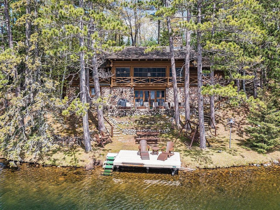 Tomahawk Lake: Spectacular yesteryear full log legacy retreat on the “King of Lakes” of the Minocqua Chain! A delightful time machine that will transport you and your fortunate guests to a world of privacy, old world craftsmanship, and the simple joys of “life on the lake”. Access to the residence from mainland parking is via inspiring nature trail and bridge, navigated by golf car or savored on foot through hundreds of Norway Pines along the lake shore. Once at the property, you will thrill to the sparkling southwest views across the lake and enjoy a private mooring bay with permanent boat shelters. The one-of-a-kind home was hand constructed 90 years ago by artisans, and boasts massive full fieldstone fireplaces, hand-selected full logs, warm wood floors, and traditional lodge floor plan. So much to see and smile about. Check the photos, then appoint for a private showing. First time offered in decades. This is a place you will be proud to own.