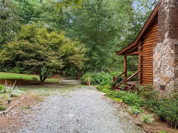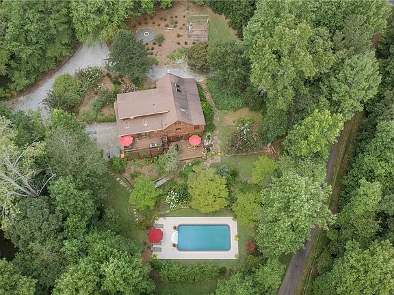 Luxurious, updated Vermont log home nestled on 5+ tranquil acres in Cumming! Inviting front porch entry. Home features large vaulted family room with new wood burning stove, opening to chefs kitchen with stainless appliances, granite counter tops and an abundance of cabinets for storage. Light filled Dining room with walls of windows. Main floor bedroom with ensuite bath with claw foot tub. Enclosed porch off rear of home with picturesque views! Powder room on main level. Second level offers large bedroom and recently renovated full bath , sitting room/loft -could be additional bedroom. Newly renovated terrace level with bedroom, family room, full bath, storage room and oversized garage. Home has new sprawling rear decks, outdoor shower, koi pond and in ground pool. New HVAC, plumbing, barn doors, lighting, gravel drive, exterior staining and interior paint. Home also offers chicken coup, fire pit, organic garden area, irrigation, invisible fence and termite bond.