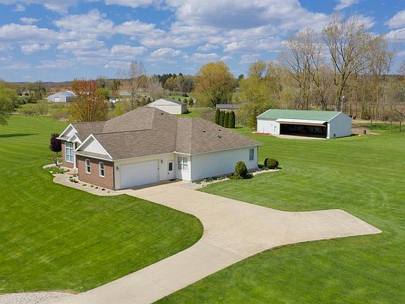 Call Ed for a private showing of this increditble home. 7400 Donegal is one fantastic home with all the upgrades. I'm not kidding, a 30X60 hangar (heated) comes with this gorgeous contemporary ranch home on 4.27 acres with water views to Loch Erin. Fly right to and from your home!! No plane, then bring your classic car collection. This unique home needs a unique buyer with great taste. Large open kitchen is fantastic with maple cabinets, huge granite counters with seating, new stainless appliances and a big pantry are just some of the offerings. Master suite is large with awesome bathroom, walk in closet and doors to large open patio. Open floor plan all on the entry level. 3 bedrooms, 2.5 baths, formal dining, living room, family room and an additional office/study. Everything is in incredible condition. Move in and enjoy the beauty. Full basement is a huge bonus space, plumbed for additional bath and egress window for possible additional bedroom. Running out of room to boast about this home, but I have to mention foam insulation for walls, forced air heating plus in-floor heating and cozy gas fireplace. Everything an executive family could want, and only 45 minutes from Ann Arbor.