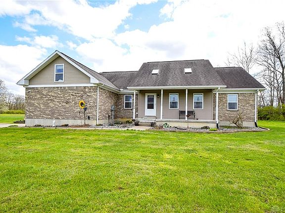 This 3 bedroom 2 bath home was built and well maintained by the curent owners. The large bonus room can easily be a 4th bedroom. The geothermal system is new, installed in December of 2020. Utilities are really low with this system. Full basement with 2 car attached garage and also a new deck on the back of the home. Alfalfa is planted on approximately 5 acres, maintained and harvested by a second party, which can ve negotiated to continue if wanted. 30x40 framed outbuilding/garage has 100 amp service and concrete floor.. Master suit has 2 large walk in closets, garden tub and water closet. The creek has given the owners much pleasure over the years as has watching wildlife in the country setting. A large equestrian center is near by for those involved or who enjoy horses as an added plus in the area. Minutes from Miamisburg, West Carrollton, I-75 and Austin Landing.