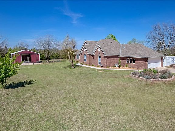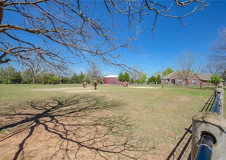 Take a look at this beautiful horse property. 5 acres of pure bliss, waiting for its new owner. The home has huge windows with tons of natural light, beautiful wood floors and tile throughout. Solid surface counter tops in kitchen and updated bathrooms. The master bath has a soaking tub, separate tiled shower and huge walk in closet with build in drawers. The spare bedrooms share a jack and jill bath. Outside there is a barn with 4 horse stalls equipped with automatic waters and Promat flooring. There are 3 separate turnouts with new fencing and a fenced backyard with vinyl privacy fencing. This piece of heaven makes you feel like you live on a huge ranch but just minutes from downtown OKC.