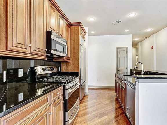 Sun-drenched 3 bed/ 2 bath penthouse unit in premier riverfront condo community. Gleaming hardwood floors, high-end stainless steel appliances and in-unit Washer/ Dryer are just some of the many highlights of this gorgeous home. Over-sized closets in all 3 bedrooms. Rare opportunity to own an apartment that includes 2 garage parking spaces. Amenities include pool, gym, 24-hr concierge, direct access to Hudson River walkway and much more. Quick commute to NYC via NJ Transit or NY Waterway. Call for a private showing!