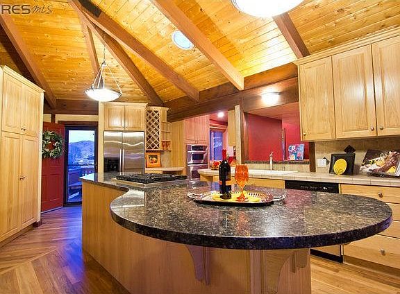Magnificently renovated custom ranch home nestled on Sunrise Ridge. Private surroundings mingle w interior areas through glass walls & doors. Gourmet kitchen w granite, stainless, Viking gas cooktop, hickory cabinets, wine cooler. 4 bdrms, 3 ba, 3 fp, steam shower, dual office built-ins, cathedral ceilings, skylights, walnut floors, decks, hot tub, water feature. Crow's nest, lofts. 3car garage, large shop, 3-stall barn w tack room, hay storage, 10.6 fenced acres. Minutes from Downtown Lvld.