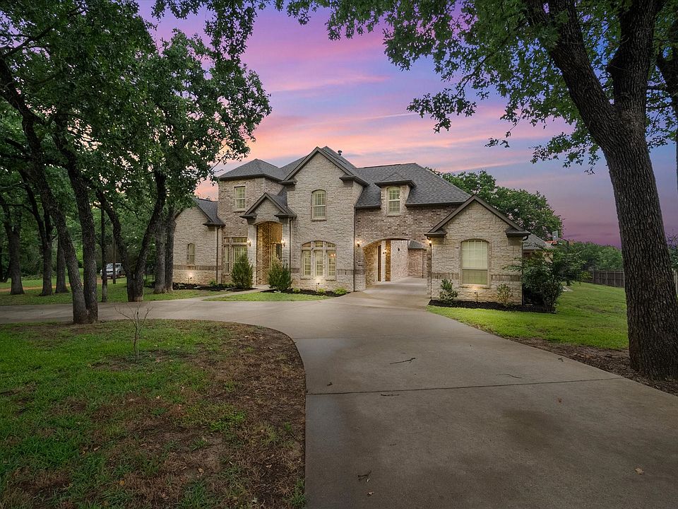 Absolutely BEAUTIFUL custom home nestled on a heavily treed acre lot outside of the city limits. No city taxes. Tax rate 1.5745%. Circle drive, porte cochere and FOUR car garage for all your parking needs. Four bedrooms, three full bathrooms, one half bath, study, formal dining, living room, breakfast room, butler's pantry, large utility room, game room, media room, balcony and then the huge backyard with covered patio and saltwater POOL! Roof replaced July 2024. Desired Joshua ISD.