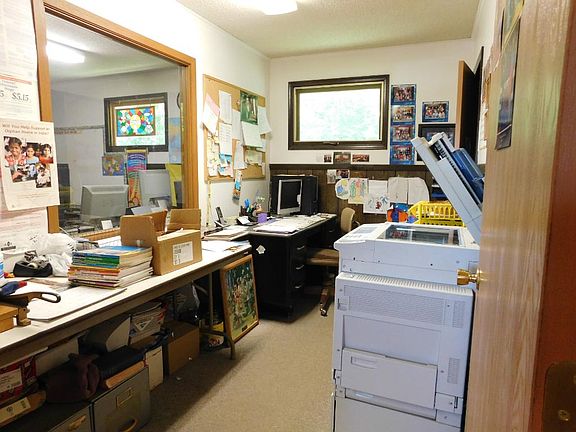 This property is current use is a Christian school. Former house converted w/large classrooms, office space, 4 bathrooms, newer well, playground area, lower level classrooms w/separate entrance. Needs updating, but great location close to town.