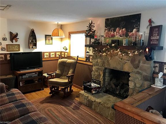 Grab your cocoa and snuggle up in front of the fireplace. This home's warm and cozy feeling is felt the moment you enter the screened in porch. The living room and kitchen offer an open concept layout.The hardwood pine floors flow throughout the home.The kitchen provides ample cupboard space and all appliances. This home has 3 but possible 4 bedrooms.Outside you will find a large storage shed under the home with plenty of room for the kayak, golf cart and canoe. Make memories in the playhouse outside or take a walk to the lake where you can enjoy your own dock space. This home comes with everything from beds, dressers, couch ..etc. a complete turn key. Leesville lake is 9.9hp lake with ample fishing and plenty of public hunting.