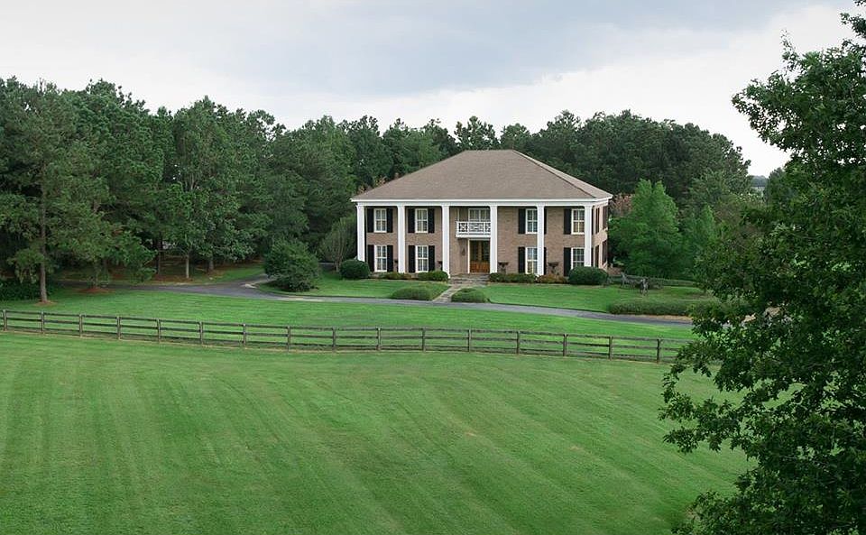 A pristine equestrian farm with a main home, horse facilities, sun room, heated pool, lakeside gazebo, pastures, good fencing, and a private secluded drive with gate