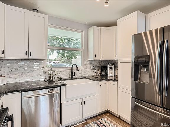 Great 3 bedroom, 1.5 bath home in Denver with easy access to downtown. Updated kitchen with plenty of cabinet space, granite countertops, farmhouse style sink, and some stainless steel appliances. Main floor laundry with stackable washer/dryer included and barn door feature. Newer laminate flooring throughout. Newer gas hot water heater. You'll enjoy the huge private backyard.
