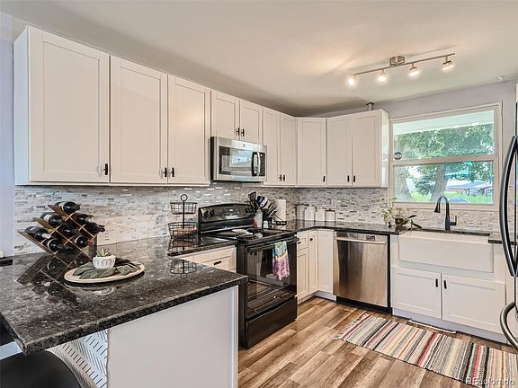 - Description: Beautifully Updated Kitchen With Granite Countertops, Spacious White Cabinets, Farmhouse Style Kitchen Sink, Some Stainless Steel Appliances.