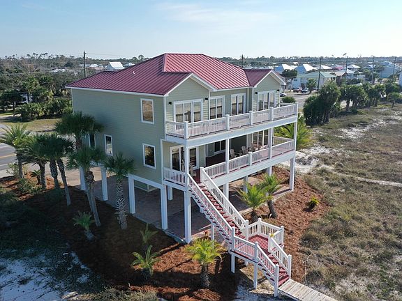Sitting on a 70' gulf front lot, this stunning 5 bedroom, 4.5 bath gulf front home offers views, luxury & privacy at St. Joe Beach! Unique to this area of St. Joe Beach, nothing can be built within 300' on either side of the home. The open floor plan offers plenty of gathering room with the large gulf front living area, dining area & gourmet kitchen. The main level gulf front master suite has 2 walk-in closets & custom master bath. The living & dining areas along with the master bedroom have access to the gulf front deck. Upstairs features 4 guest bedrooms, 3 full baths, living area & deck. Amenities include tile floors throughout, granite counters in kitchen & baths, Rinnai hot water, new stainless appliances, new kitchen cabinets, custom tile showers & backsplash, 3 stop elevator, pavers underneath home, paver driveway, outdoor shower.