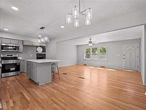 Welcome to this beautifully updated raised ranch situated on a spacious corner lot in the heart of Gladstone! Enjoy all-new landscaping and a freshly seeded lawn that enhance the home’s charming curb appeal. Inside, you’ll find three bedrooms and two full bathrooms with convenient main-level laundry. The light-filled living areas include two separate living spaces—one featuring a cozy wood-burning fireplace perfect for relaxing evenings. The completely renovated kitchen showcases stainless steel appliances, modern cabinetry, and stylish new lighting throughout. Every detail has been thoughtfully updated to provide comfort, efficiency, and modern style. If you’ve been looking for one-level luxury living without the high price tag, this is it! Located in Gladstone—where you’ll love the community amenities and no earnings tax—this move-in-ready home offers the perfect blend of value, design, and convenience.