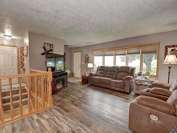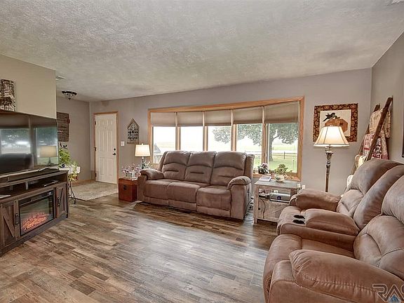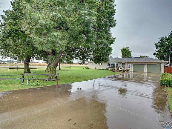 Out of town living at it's finest! This Ranch 4 bed (3 on the main), 2 bath, 2 stall garage home is conveniently located next to Northern Links Golf course just outside of Sioux Falls and has quick access to Sioux Falls and the interstates. This home has so much to offer; 3 bedrooms on one level, an open floor plan from Kitchen, dining, and living room; a large bay window in the living room, an updated color palette throughout the home, updated vinyl plank flooring through the main living space, a tiled kitchen backsplash, a large kitchen with pantry cabinet, an updated bathroom with double vanity and tiled shower, main floor laundry, permanent siding, updated windows and so much more. Enjoy the outdoors on the deck over looking the fenced in yard, large shed, and paver patio with fire pit.