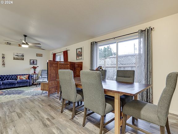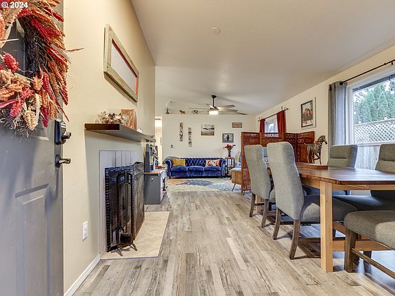 Welcome to this charming ranch-style home nestled in the heart of the Brentwood/Darlington neighborhood, discreetly situated on a flag lot for added privacy. Boasting a spacious one-level layout, this residence offers an inviting great room footprint that effortlessly blends functionality with comfort. Step inside to discover a dining room adorned with a vaulted ceiling and a cozy fireplace, seamlessly flowing into the living room featuring stylish LVT flooring and convenient slider access to a side patio. The newer updated kitchen is a culinary haven, equipped with gleaming stainless steel appliances, a gas range, an inviting eating bar, and a vast pantry/laundry room, providing ample storage and convenience. Accommodating three bedrooms, including a tranquil primary en-suite with a newly remodeled bath, each space exudes warmth with plush carpets underfoot. A second full bath boasts wainscoting, a newer vanity, a skylight, and a tub/shower combination. Additionally, a versatile fourth non-conforming bedroom, complete with electricity, offers endless possibilities for customization or use as a home office or hobby room. Outside, the fully fenced low-maintenance yard creates a private oasis perfect for entertaining guests or unwinding in tranquility. The new owners will appreciate the convenience of being within walking distance to parks and mass transportation, ensuring easy access to all the amenities and attractions this vibrant neighborhood has to offer. Don't miss this opportunity to embrace comfortable living in a coveted location! [Home Energy Score = 7. HES Report at https://rpt.greenbuildingregistry.com/hes/OR10134193]