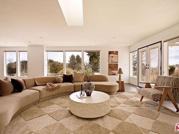 An artful blend of design, sustainability, and tranquility. Conceived by world-renowned architect Michael Reynolds, this eco-conscious retreat at 7401 Studio Road offers 3 beds, 2 baths and 3,600 sqft of elevated living on over two acres. Built with fire-resistant materials, including a fire-resistant roof on both the home and detached two-car garage, it's as durable as it is beautiful. Fully powered by owned solar panels, the residence operates with remarkable efficiency and near-total energy independence. A long private drive winds through a park-like setting with native gardens and a centerpiece water feature within a circular motor court. Inside, remodeled bathrooms, an open kitchen and sunlit living spaces with 120 ft of energy-efficient windows frame breathtaking mountain and canyon views. The main living room anchors the home with dramatic scale and warmth, while the upstairs lounge doubles as a cozy screening room with a drop-down projectorperfect for movie nights under the stars. The detached two-car garage offers versatile creative use, while a natural path leads to an al fresco dining terrace. A serene sanctuary of light, design and calm.