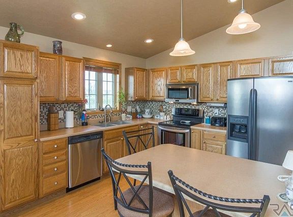 Beautiful home on a beautiful pond with mature trees! Relax after work or on the weekends with a fire on the paver patio or dinner on the deck near a peaceful secluded pond. Updated kitchen with backsplash and stainless appliances. 4 bedrooms (with walk in closets) and 2 large bathrooms, fireplace in lower level and a triple stall garage! Don't miss out on this beautiful home on this AMAZING lot!