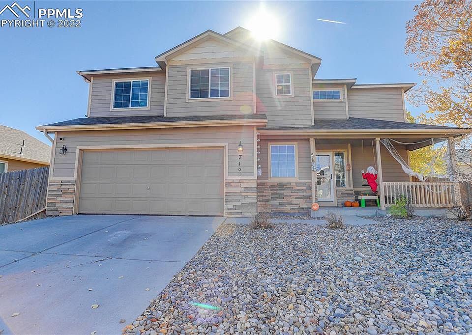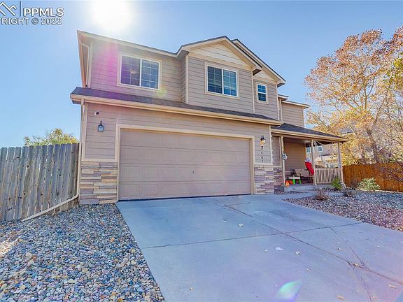 Welcome home! This stunning 2-story property is conveniently located at Tuscany Ridge in Mesa Ridge Village, only minutes from Fort Carson with easy access to I-25! This property features a newly landscaped backyard with low maintenance and Broadmoor style turf, all while enjoying views from the second-level deck or basement walk-out. Upon walking through the front door, it opens to a large living space with vaulted ceilings and shared gas fireplace, accessible from both the living and dining room areas. Enjoy your new spacious kitchen with plenty of counter space, massive island, and large pantry area. The entire main floor is surrounded by large, elevated windows, providing natural light across the entire space with a half bath perfect for guests. All three bedrooms are located on the upper level with two full bathrooms, plus a conveniently located laundry room with a built-in table for folding clothes and storage. The master suite is spacious along with a 5-piece master bath, double vanity, and even more natural light. This property comes with a full-sized unfinished basement, already plumbed for your 4th bathroom with plenty of room for an additional bedroom and secondary living space. Don't forget your oversized garage with extended sides to allow easy access entering and exiting vehicles, plus a built-in area for additional storage and/or workshop. The backyard is fully fenced and includes the additional land behind the fence for even more space. Don't miss out as this property won't last long!