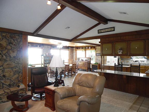 Extremely well maintained brick home on 13 beautiful acres. Open floor plan, FP insert & vaulted ceiling in LR, granite in kitchen including eating bar & center island. Access nice covered patio from dining & master BR. New tile work in master 3/4 bath. Spacious extra room houses laundry facility & lots of storage...could be 2nd living area, 4th BR, office, etc. Awesome 50x40 insulated